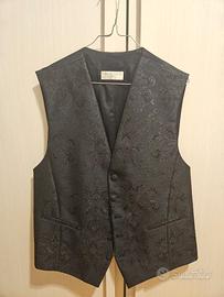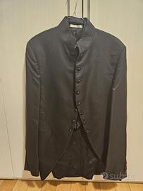 Vendo abito da sposo Carlo Pignatelli blu notte, con giacca con collo alla coreana, bottoni con punto luce e panciotto damascato, usato una volta. Piccole regolazioni di sartoria sull'orlo dei pantaloni e schiena della giacca (sono alto circa 200cm x 92kg).