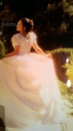 Vendo abito da sposa in mikado di seta colore rosa. In ottimo stato, lavato in lavanderia professionale, taglia 42, mia altezza cm 168, seno taglia terza. Posso dare anche il velo (ha un piccolo strappo sul fondo), i guanti, le rose per l'acconciatura e il cuscino per le fedi, compreso nel prezzo. L'abito è stato indossato nel settembre del 1996 e lo vendo per fare posto in casa. L'abito ha il sottogonna ed è di un rosa delicato che a seconda della luce può sembrare avorio. Per chi non conoscesse la marca è un abito di gran qualità.