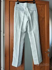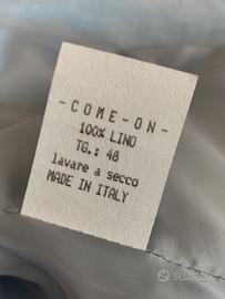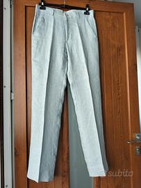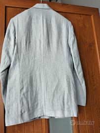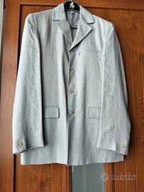 Abito da uomo Diffusion PMD TG.48 composto da giacca monopetto e pantaloni abbinati. in 100% lino di colore azzurro polvere. Abito formale, leggero, sfoderato, estivo stile vintage. spedisco oppure ritiro a Cesano Boscone Milano.