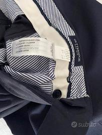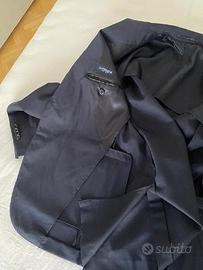 Abito da uomo, marca Gutteridge, colore blu scuro (Blue Navy), taglia 48, 98% lana, 2% elastam che consente un'ottima vestibilità, sfoderato, 2 bottoni, 2 tasche interne, molto ben rifinito, impunture fatte a mano. Taglio giovanile ideale per cerimonie, senza essere impegnativo e portabile spezzato, la giacca con un jeans ed il pantalone con una maglia lo rendono informale perfetto per tutti i giorni .