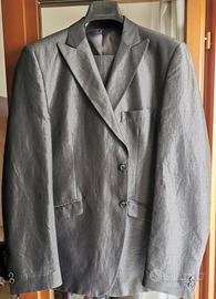 Completo da uomo in tessuto Poliestere e metal, fodera interna 100% Viscosa. Misura 54 regolar fit, pantaloni tasca America. Indossato per una cerimonia, come nuovo.