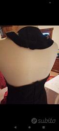 abito sartoriale,pezzo unico, nero con fodera oro e tulle e dettaglio fiocco rosso sul lato.