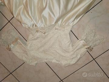 Larghezza spalle 34 cm , sotto ascelle 39 cm , larghezza in vita 35 cm , lunghezza gonna davanti 80 cm , lunghezza indietro 105 cm