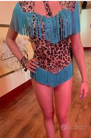 Abito danze caraibiche sartoriale con applicazione strass a uno a uno a mano . Veste una XS