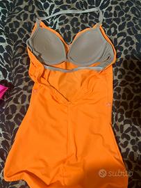 Abito danze latine in lycra elasticizzata Colore arancione e rosa acceso composto da 2 pezzi collegati da bottoni automatici Taglia S