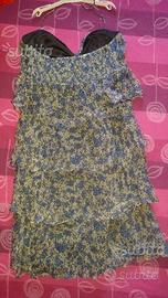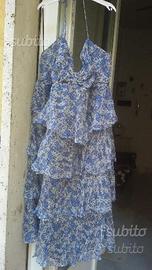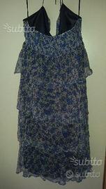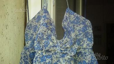 Vendo abito Zara in 100% SETA, causa taglia sbagliata. Ha una bellissima fantasia a fiorellini azzurri, è a balze, legato dietro il collo. Fodera interna blu. Taglia L.