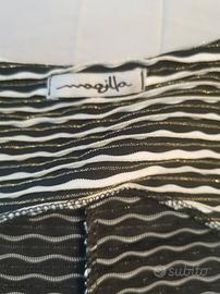 Elegante abito a tubino, perfetto per ogni occasione. Realizzato in Italia con attenzione ai dettagli. marca Magilla, taglia M 42 slim-fit, di colore bianco/nero con fili dorati. 90% poliestere, 10% elastan.