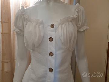 con bottoni apribili davanti ,manica corta che scende dalla spalla