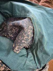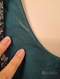 Abito donna Cacharel taglia 40 francese che corrisponde ad una 44 italiana nei toni del verde e del bianco, in lino e cotone, cerniera sul retro, tasche laterali. Attenzione bisogna dare un puntino alla piega e la fodera interna presenta delle macchie e vicino alla cerniera c'è una piccola macchiolina. È tutto evidenziato in foto Vi lascio le misure da ascella ad ascella: 44 da spalla a spalla: 42 Circonferenza vita: 72 Circonferenza fianchi: 110 lunghezza: 98