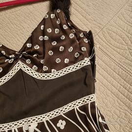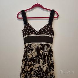 Abito seta donna taglia 40-42 color marrone e panna motivi floreali. Indossato solo una volta.