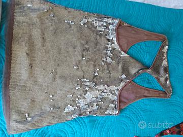 vendo abito donna due pezzi Pinko in con paillettes composto da minigonna e canottiera con intreccio nella schiena . Taglia S materiale 100% poliammide. L'abito ha degli anni ma è stato utilizzato solo una volta ad un matrimonio. Il prezzo era di 1.200,00 €.