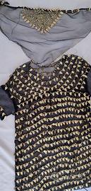 Vestito e velo viso in tulle nero con foglioline e pajettes dorate, più fodera nera. Acquistato in Egitto nel 1987, utilizzato una volta per una originale Cleopatra in maschera.