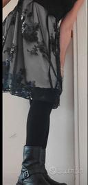 Elegante abito da donna con dettagli in pizzo e paillettes. - Scollo a V - Tessuto in tulle - Cintura in vita