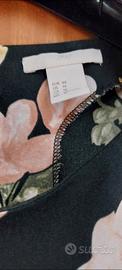 Elegante abito da donna con una vivace fantasia floreale su fondo scuro. Perfetto per diverse occasioni.