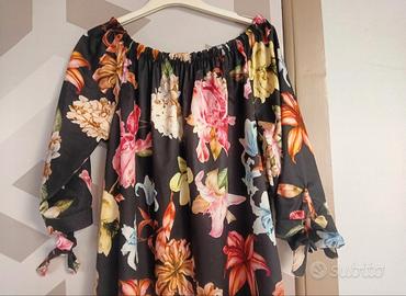 vendo abito donna floreale con scollo a barca e fiocchetti nelle maniche
