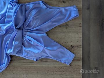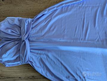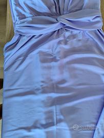 Abito da donna di Rinascimento lungo colore lilla, taglia M, lunghezza da spalla a fine gonna 151cm. il fiocco sotto il seno ha una circonferenza che va da 72 a 82cm perché dietro ha l'elastico, poi scende morbido.