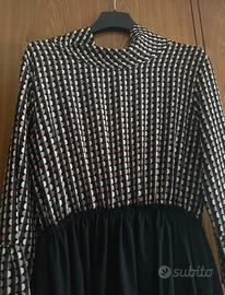 Abito con corpino a piccoli disegni e gonna palloncino (sfondo svasato) in cotone Ottime condizioni, usato un paio di volte, vendo per inutilizzo Veste taglia 44/46 (ma anche di più perché elasticizzato in vita)