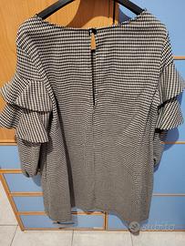 Abito donna di Imperial linea ampia che si può stringere con cintura, maniche con Rouches, fantasia tinto filo Micro pied de poulle, tg. S. In ottime condizioni come nuovo. Ideale per le mezze stagioni/inverno. Ottima vestibilità.