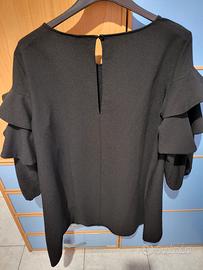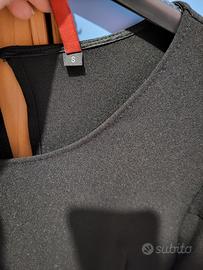 Abito da donna Imperial in perfette condizioni, colore Nero tg. S, con rouches sulle maniche, lunghezza sopra al ginocchio, linea a trapezio/ampia che si può stringere con cintura.