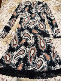 Vendo abito donna, fantasia nero e albicocca, con intreccio nella scollatura, di Nuna Lie , taglia S , molto bello elegante.