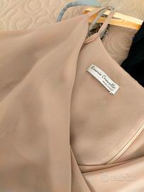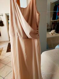 Elegante e sobrio abito lungo donna in crepe di viscosa marca Cannella colore beige chiaro interamente foderato .Chiusura sulla schiena .Scollo sul seno ad incrociare .Taglia L.Vestibilitá da una 42 a massimo 44 .Indossato solo una volta vendo a prezzo da vero affarone