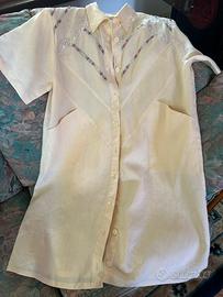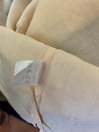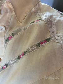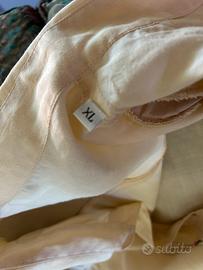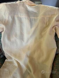 Abito donna modello a camicia in puro lino con piccoli inserti di pizzo Valencienne taglia XL color salmone chiarissimo in ottime condizioni