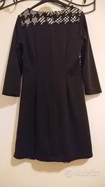 Abito donna Rinascimento. Caldo e morbido. Colore nero con disegni bianchi sul davanti e dietro sulle spalle.