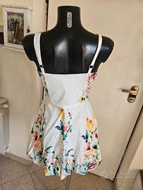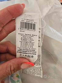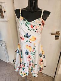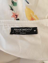 Abito donna Rinascimento, modello longuette, tessuto in cotone elasticizzato e chiusura a zip laterale, ottima vestibilità e rifiniture, fantasia floreale, colore bianco e multi, in perfette condizioni, Tg M