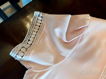 Abito molto elegante, da poter indossare sia senza calze, con le calze, con dei leggings… Taglia M. Il colore è un rosa confetto molto elegante e ha questi inserti di pizzo che danno un tocco di classe.
