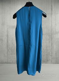 Lasciati conquistare da questo splendido abito Sisley color blu petrolio, un vero e proprio gioiello di stile che saprà valorizzare la tua figura con eleganza e originalità. Il design è caratterizzato da un sofisticato drappeggio asimmetrico sul davanti che crea un movimento fluido e un look moderno, mentre lo scollo a V aggiunge un tocco di femminilità discreta.