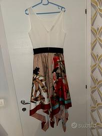 Vestito da donna, usato 1 volta. Materiale poliestere. Fantasia gonna floreale, con spalline e cerniera posteriore. Taglia S