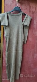 abito elastico a costine con manicotti veste fino una tg xl