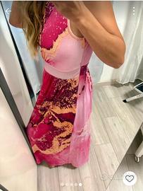 Abito non trasparente. Da indossare con tacchi e scarpa bassa. Delinea bene il corpo. Rosa fucsia dorato