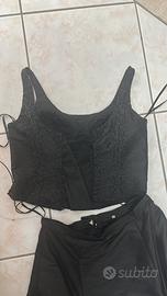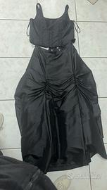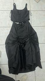 Abito nero elegante da cerimonia CATERINA MASONI, composta da gonnellone con le balze aggrappate e tulle sotto, corpetto intrecciato dietro ricoperto di pietre, completo di stola, l abito è stato indossato una sola volta ed è stato tenuto in ottime condizioni