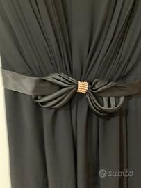 Abito nero elelgante ceirmonia lungo - imcrespato dietro - cintolino da legare sul dietro - inserto sul dacanti - tg 44/46/48/50