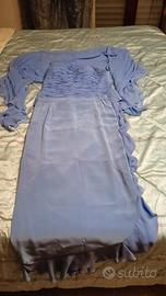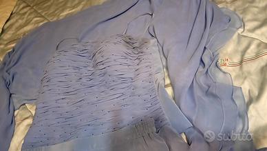 Vendo abito elegante da cerimonia composto da corpetto e gonna coordinata, colore azzurro/lilla pastello, perfetto per matrimoni, comunioni e occasioni speciali.