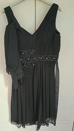 Abito elegante da cerimonia, colore nero, completo di stola, taglia 46, apertura con cerniera laterale.
