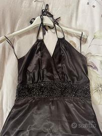 Vendo abito come nuovo tessuto marrone lucido , foderato . Con cintura impreziosita e schiena scoperta