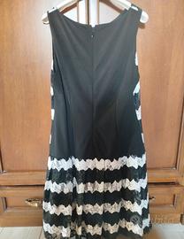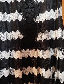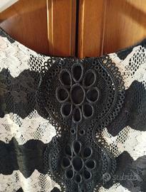 Abito in pizzo smanicato bianco e nero con motivo a zig zag e dettagli floreali, taglia L, Made in Italy.