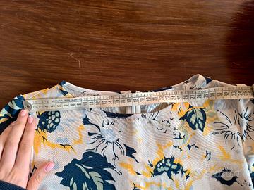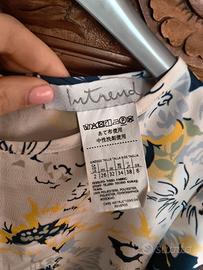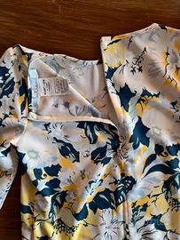 Abito corto a fantasia floreale, blu e giallo su sfondo bianco, manica a 3/4 e zip sul retro. Marchio Intrend ma di una collezione Max&Co. Tessuto sottile e fresco, adatto per cerimonie estive. Le dimensioni sono in foto, per qualsiasi informazione puoi contattarmi