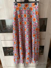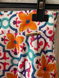 Vendo causa inutilizzo, usato 1 volta, acquistato 200€ meraviglioso abito a 2 pezzi, stile con maioliche colorate, marca Maidoma. Top con chiusura zip sul di dietro, con bratelle regolabili, taglia 44 e gonna lunga circa 110 cm con chiusura a zip laterale taglia 42, Abito adatto per cerimonie o occasioni speciali estive. Made in Italy