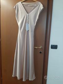 Lunghezza midi,arricciatura laterale,scollo morbido sul davanti e scollatura a v sulla schiena.