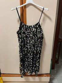 Abito elegante tutto in payette ,fondo nero e payette in argento , taglia unica , modello con bretelline e scivoloso , sotto foderato , nuovo con cartellino , euro 6, prodotto italiano