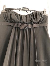 Elegante abito nero stile impero. Si annoda con un sottile laccetto dietro al collo. La gonna a palloncino è lunga fin sopra al ginocchio. Usato poco. Buone condizioni. Taglia S