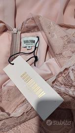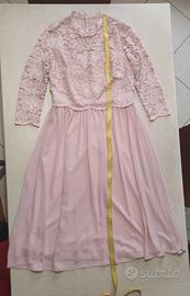 vestito primavera / estate mai indossato per taglia errata. colore rosa chiaro. taglia S/M (buona vestibilità). nessuna macchia. adatto per cerimonia (cresima, damigella matrimonio ecc...) o occasione speciale. corpetto in pizzo, con maniche a tre quarti. gonna con sottogonna (non trasparente). marca Bubbleroom (originale). ottima qualità. molto elegante. stato: nuovo con cartellino