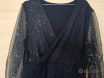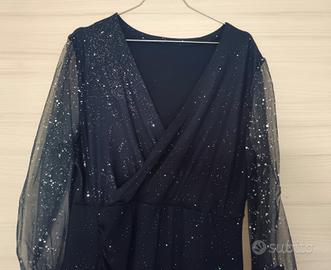 Bellissimo vestito blu elegante anche per cerimonia perfetto e come nuovo (nessun difetto) brillantinato ma in modo delicato e maniche particolari taglia 48/50 vendo per cambio taglia a 15 euro