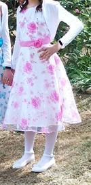 13 anni, 158 cm. Abito elegante utilizzato una sola volta per una cerimonia. Si chiude con cerniera sulla schiena e nastro in vita. Colore bianco e fiori rosa.