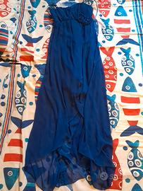 Abito elegante da cerimonia Rinascimento,corto davanti e lungo dietro con spalline regolabili colore blu elettrico taglia xs