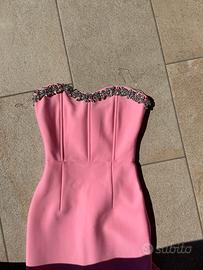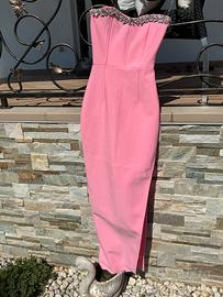 Taglia XS Vendo abito lungo/midi di SHEIN, color rosa pastello, perfetto per una cerimonia, una festa di compleanno o una serata speciale. Il vestito è a tubino, modella molto bene le forme grazie al taglio stile corsetto sul busto. Punti di forza: • Dettaglio Top: Scollo a cuore con bellissime applicazioni di strass (molto luminose dal vivo). • Design: Spacco laterale profondo che slancia la gamba. • Condizioni: Pari al nuovo, indossato solo per poche ore. Lavato e igienizzato. • Vantaggio: Disponibile subito, senza aspettare i tempi di spedizione del sito!