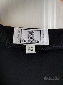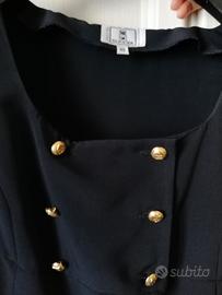 Abito nero elegante di OLIVER by VALENTINO GARAVANI, tg 46, lungo, tessuto 100% poliestere ottima qualità effetto seta, con spacco centrale sia davanti che dietro, bottoni gioiello, lunghezza totale 122cm.